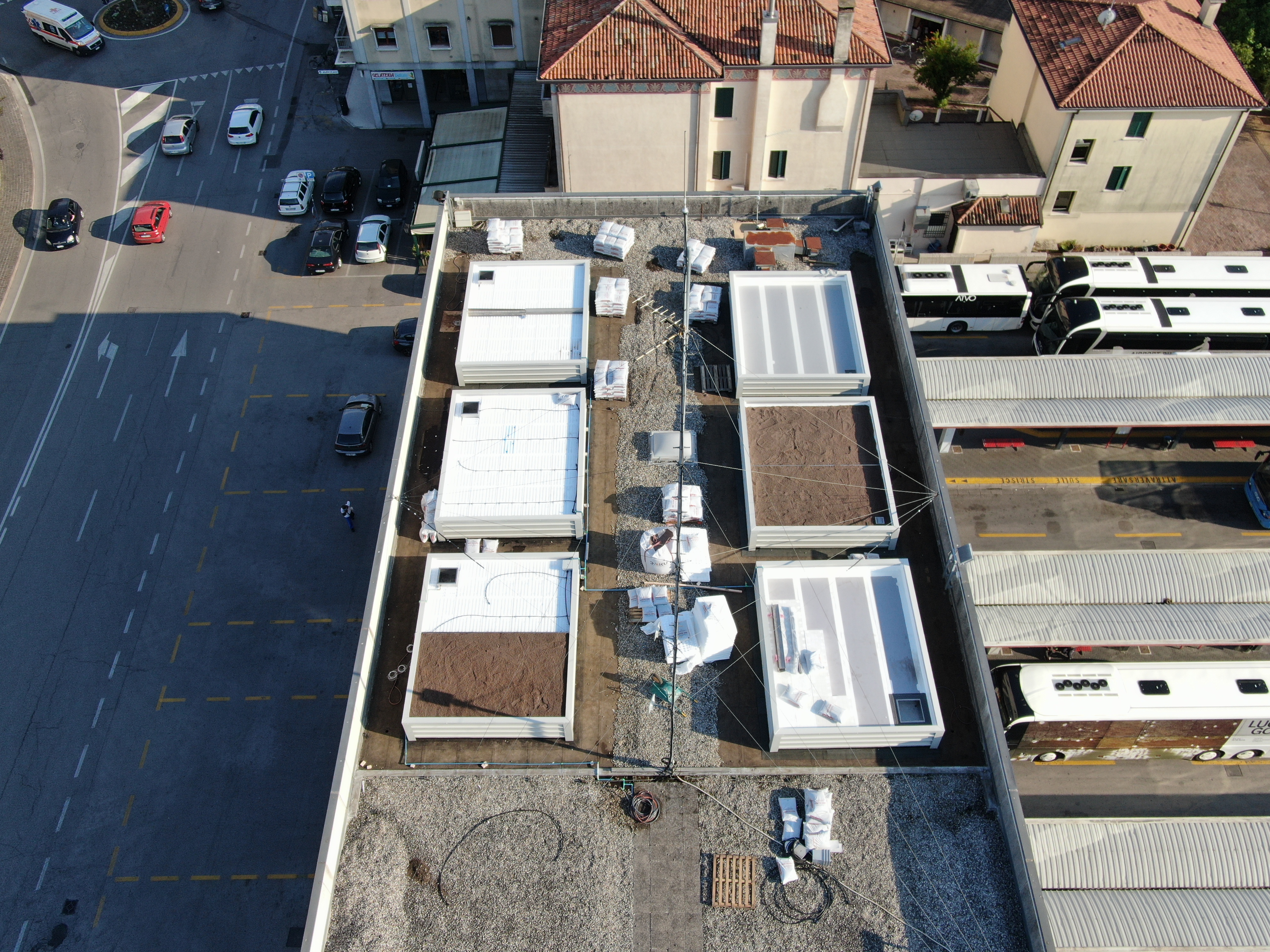 Al via i lavori per il progetto ‘’BLUE GREEN ROOF’’ sulla copertura dell’autostazione ATVO di San Donà di Piave. DAKU ITALIA è assegnataria del bando finanziato dalla Regione Veneto con Misura POR FESR 1.1.4. Il finanziamento regionale ed europeo consentirà di poter sviluppare dal brevetto un nuovo sistema a verde pensile in collaborazione con il Consorzio di Bonifica Veneto Orientale, il Dipartimento di Agronomia Animali Alimentari Risorse Naturali e Ambiente (dafnae) dell’Università di Padova, l’Università IUAV di Venezia e con la partecipazione di aziende come PROTOLAB S.r.l. e MR ENERGY SYSTEMS S.R.L.